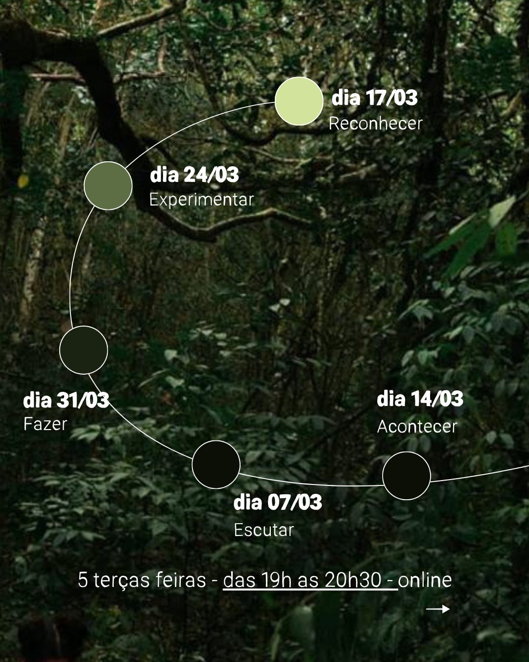 Início em 17 de março. 5 terças feiras, das 19h às 20h30